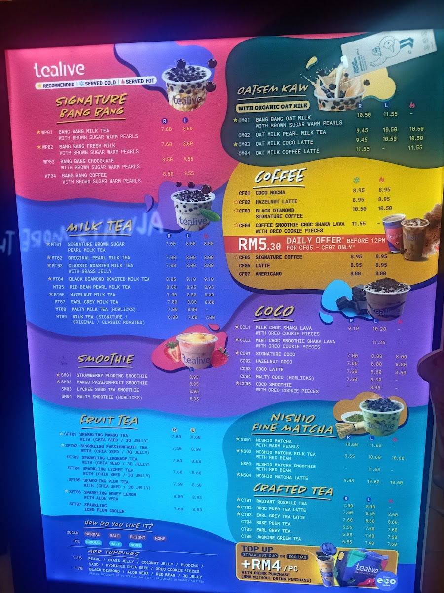 Plus, the Superior Coco stands out as a creamy and rich offering, ideal for indulging your cravings. What sets Tealive apart is not just its menu, but the friendly service that keeps customers coming back. With reviews praising consistent quality and delightful new offerings, Tealive Aiman Mall Samarahan is a must-visit for anyone in the area, promising a satisfying experience for every palate.